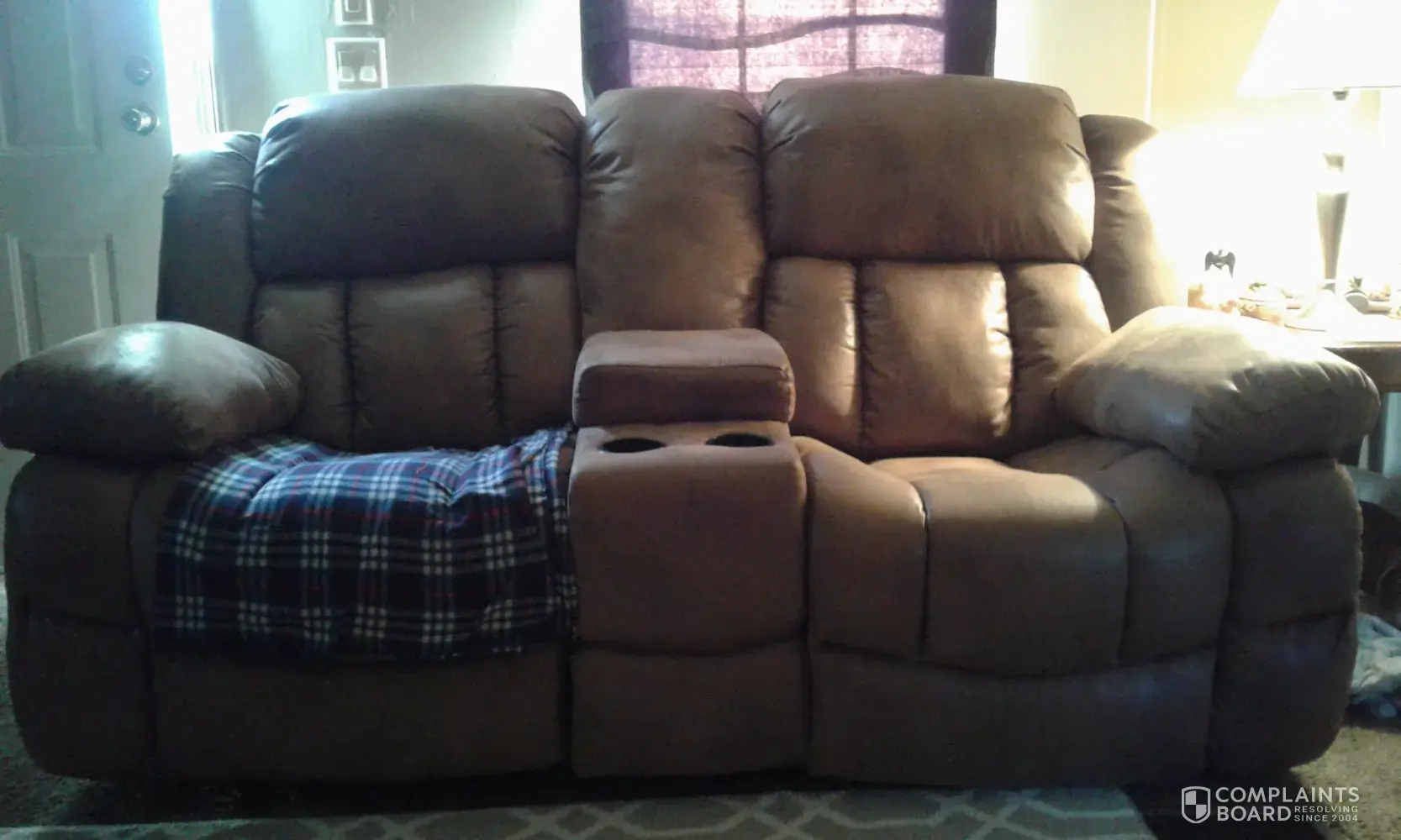 The left side sits about inch off floor and right side is on floor. Gap between left side to center console and right side rubs center console. Left back cushion is sitting lopsided compared to the right. I've only had this living room suit for about two weeks. Please help fix problems or give new unit. Contact me Kennth Abrams at [protected]. Greatly appreciate that. By the way I oreder this from store in Wilson, NC.