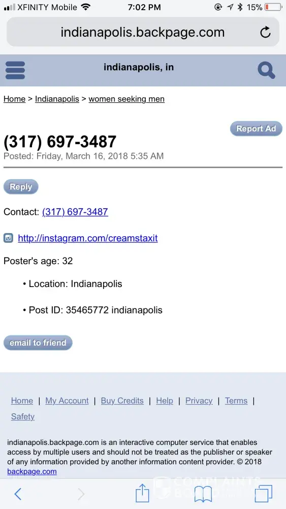 Our conclusion: After careful review, ComplaintsBoard concludes that Backpage has trust issues, raising doubts about their legitimacy. We highly recommend being cautious and doing some research before engaging with Backpage. If you have had a negative experience with Backpage, let ComplaintsBoard know by filing a complaint.