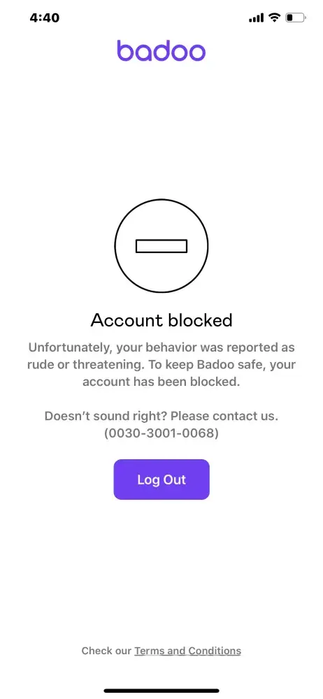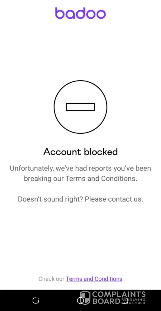 I randomly got a notification email saying that my Badoo account had been blocked due to breaking the sites terms and conditions I would like to know how so seeming i have not been on there. As well as the fact that there was no prior time of Badoo contacting me to try and address/resolve any complaint towards my account. The email associated with the account it [protected]@gmail.com