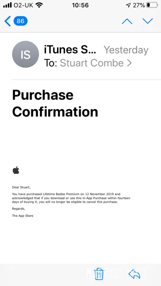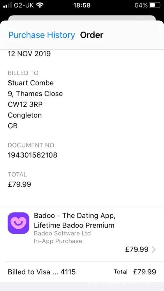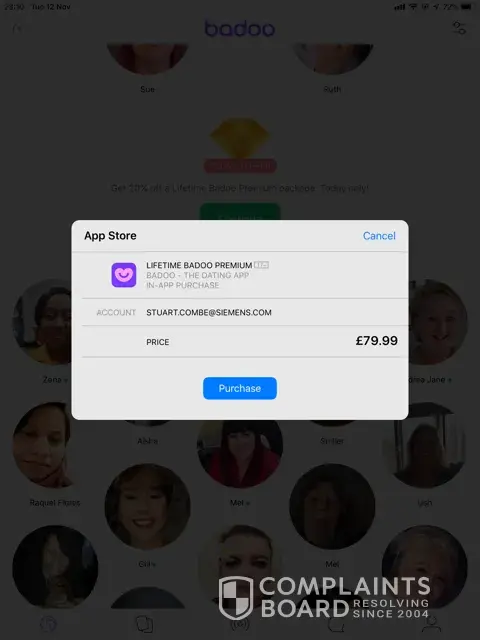 I paid £79.99 for Lifetime Badoo Premium on the 12th of November 2019.