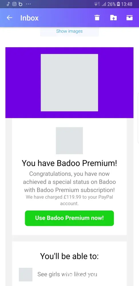 In order to look into this further, please contact us on Facebook or Twitter with @BadooHelp and we'll look into this right away.