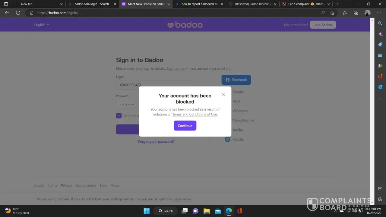 If I did something wrong, tell me what was it, in order to don't do that again, and please give a second opportunity. I followed all the Badoo rules but I inserted, sometimes, my phone number in some messages. Maybe that is why they blocked me. Can you solve this, please?