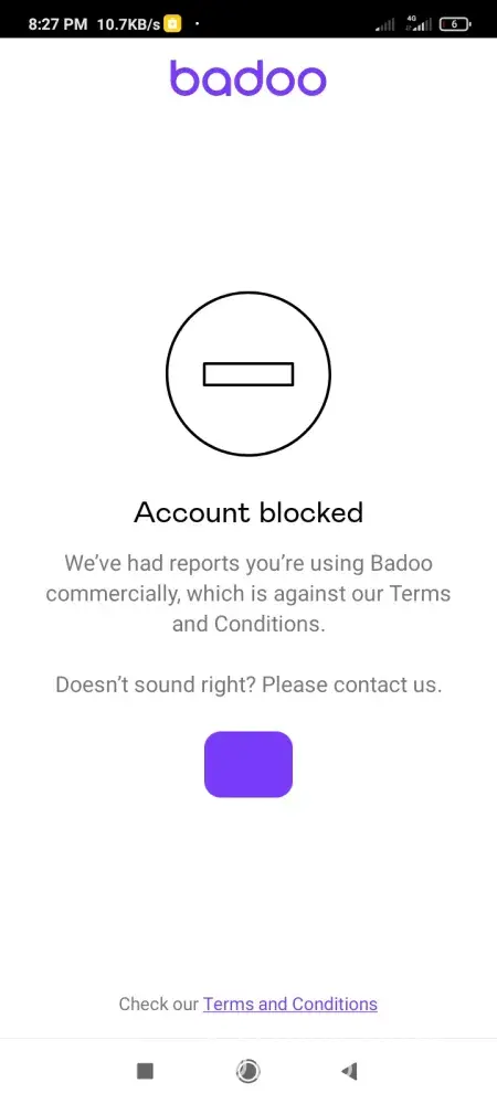 I got a notification that am using badoo for commercial purposes.