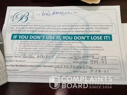 On October 14, 2020 I purchased two very expensive pieces of Natuzzi leather furniture, a recliner and sofa, including a pricey warranty on both items.