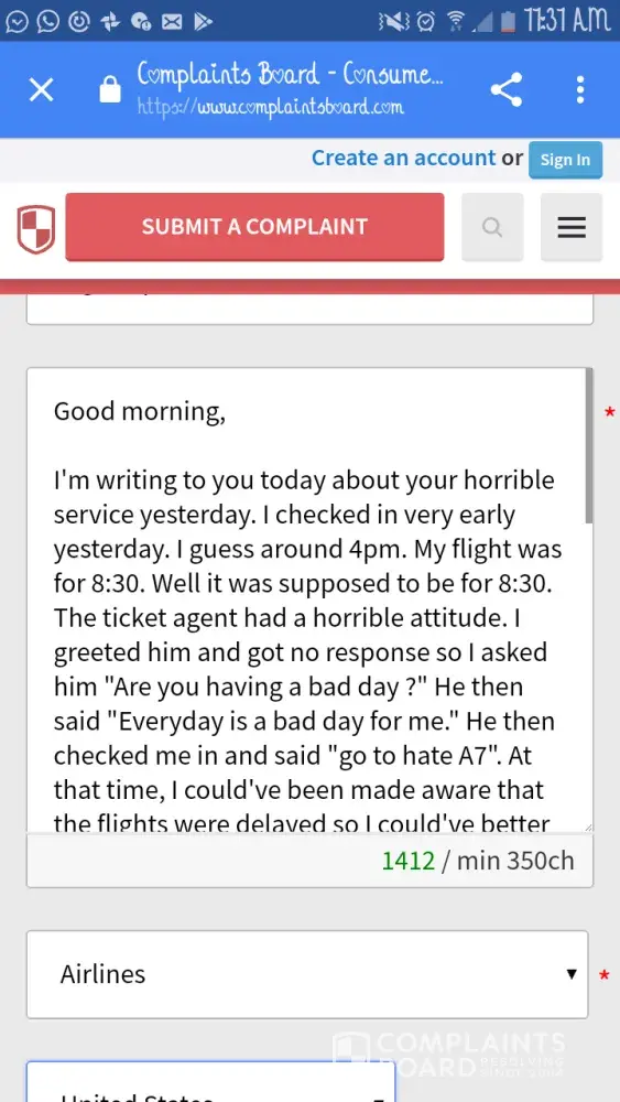 My first complaint didn't go through but I screenshotted it and attached it to this message.