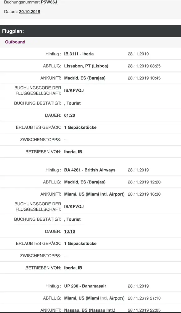 flight bahamasair 801 on aug 20, 2018 12 pm flight/confirmation rjaxaq (bahamasair)
