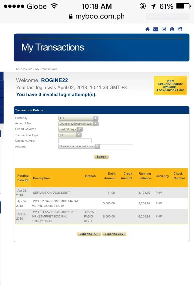 Banco de Oro / BDO Unibank debit on my account