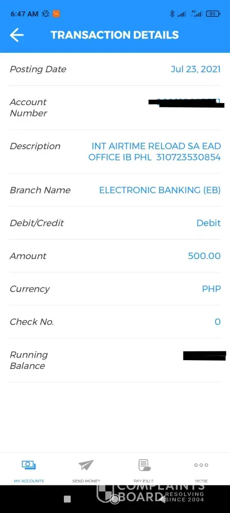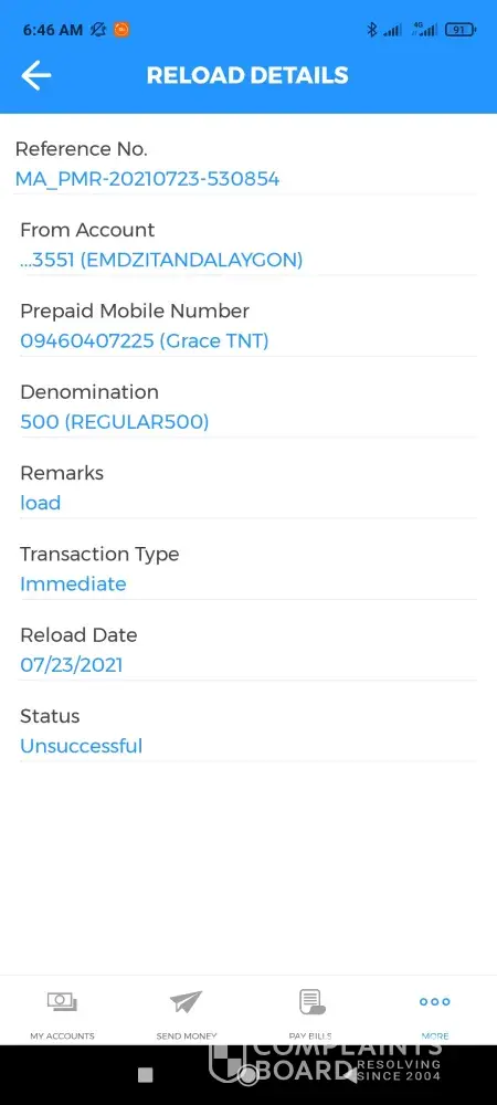 I made a transaction on the 23rd of July this year; loaded my phone for 500php. The amount was immediately deducted from my account. Upon sending my load request, a pop up message appeared saying there would be an hour delay. I waited, but then I haven't received the load within 24 hrs. Checked my balance and 500php was deducted. However the transaction is unsuccessful. It's the 27th of July now but the money has not returned into my account.