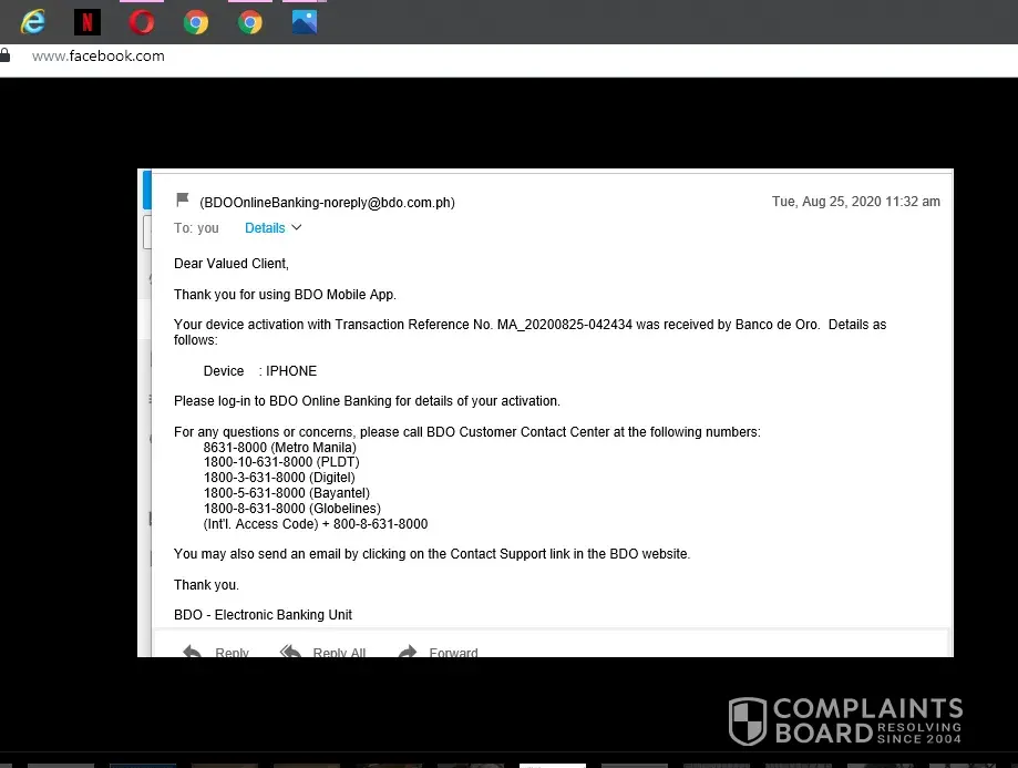 Resolved customer@bdo.com.ph