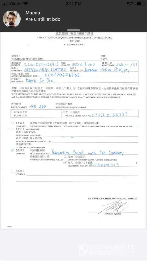 The bdo has also not replied the BOC or CITI bank via the official channels.