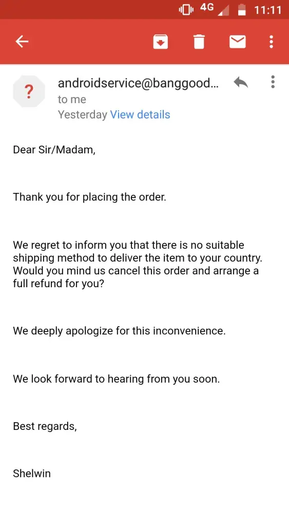 1st they said we don't have any services to deliver to India.