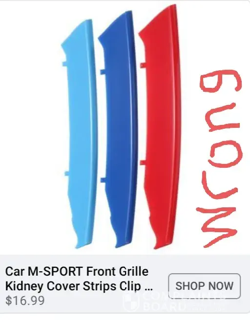 I bought MSport 3 stripes for BMW E90 and they supplied the wrong set.The advert for the item was apparently a slide show that showed two different types of the same product.