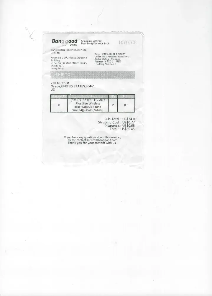 Shipping Insurance were paid. Customer details are for Banggood is [protected]@gmail.com
