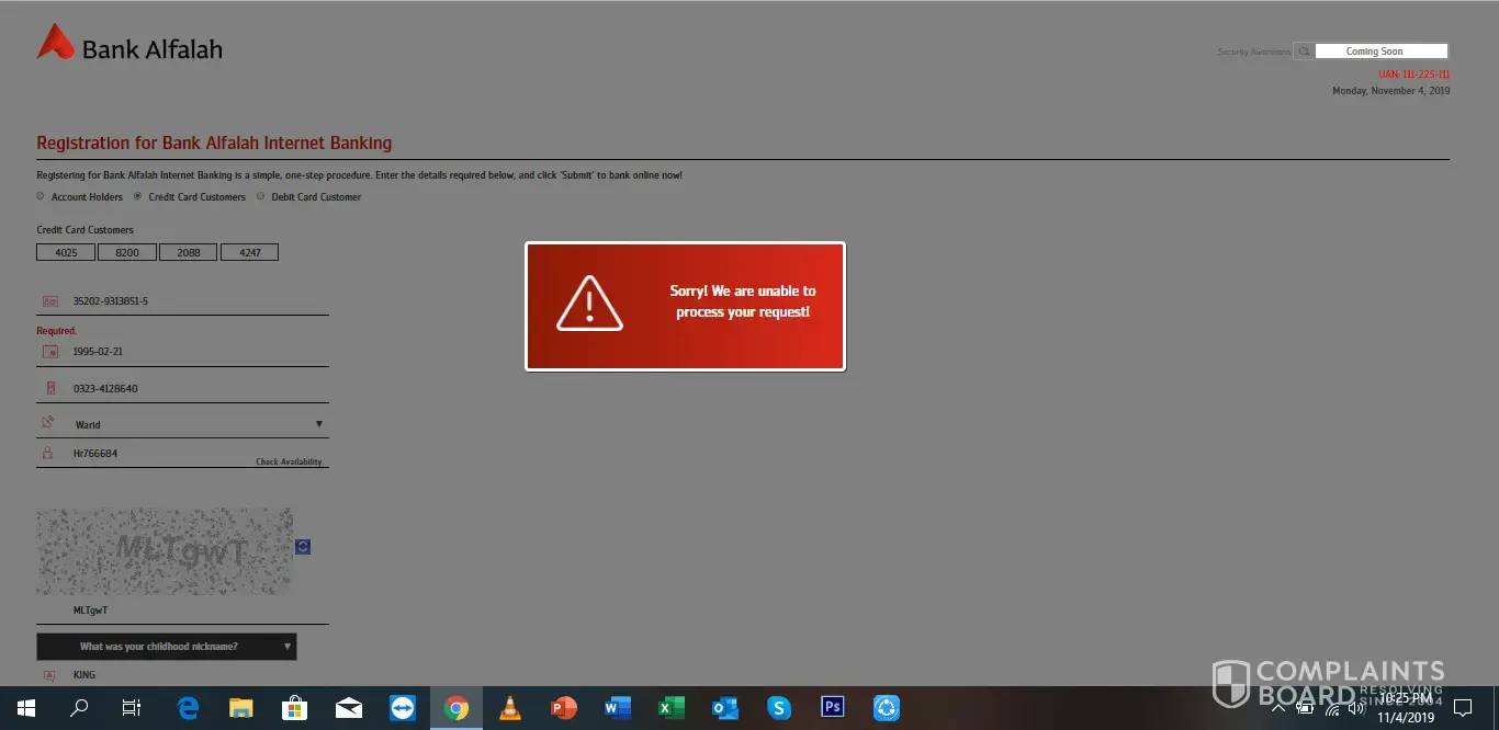 Its really a pathetic and faulty servics of alfalah online banking. I'm trying to raise my online registeration problem through credit card profile on helpline, email and live chat but no one give a suitable answer and even my mobile charges have gone to peak because of your helpline contact. According to your last email, I have called on helpline and representer told me after hearing my issue to call with your register number and when I called in the evening with the registered number than representer told me to call in morning because I have no server access at this time to see your profile and still they did'nt update my email on my credit card profile. I'm struggling with your bad service from last three weeks and I'm totally disappointed. Everyone said its over internal issue and you need to try in one to two days but 3 weeks are passed away and problem is still exist. If this problem is a long lasting and your IT server department have no capabilies to resolve it soon then tell me I can take some other step for better service from some other organization.I have attached a recent screenshot with date and time.
