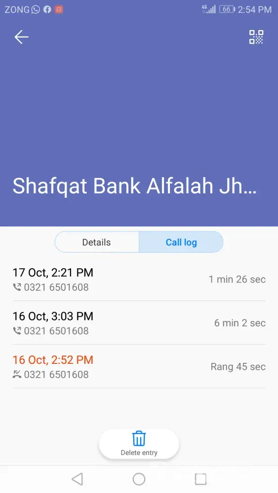 Branch alfalah ki hay korangi ind. area code hay 5517.