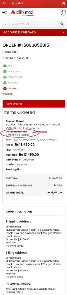 alfamall product installment issue.