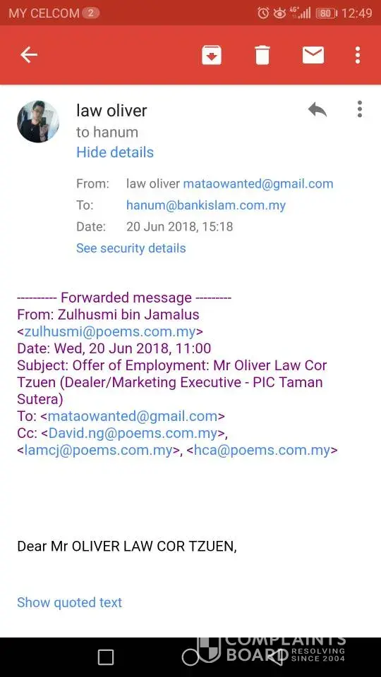 Ini menyebabkan saya berfikir beliau ini sengaja malas untuk membuat paper work & acuh tak acuh terhadap pelanggan.Sikap & komitmen beliau pada pelanggan amat dikesali.Ini memburukkan imej bank Islam keseluruhan.Saya juga telah membuat aduan melalui telefon dan bercakap dengan Cik Izan.Harap pihak Bank Islam dapat melakukan siasatan atau Domestic Inquiry terhadap Personnel Pn Nor Salawati ini agar beliau tidak mengulangi perbuatan sama kepada pelanggan yang akan datang.Bagaimana beliau boleh menjadi Assistant Manager cawangan sedangakn sikap dan komitmen beliau terhadap pelanggan bole dipertikaikan.Saya bersedia untuk bekerjasama dalam aduan ini.Terima kasih.