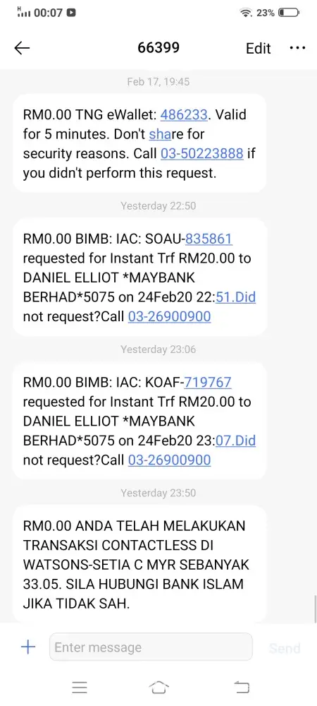 - I had received sms on the 7/7/11 informing me that a transaction was going through their system