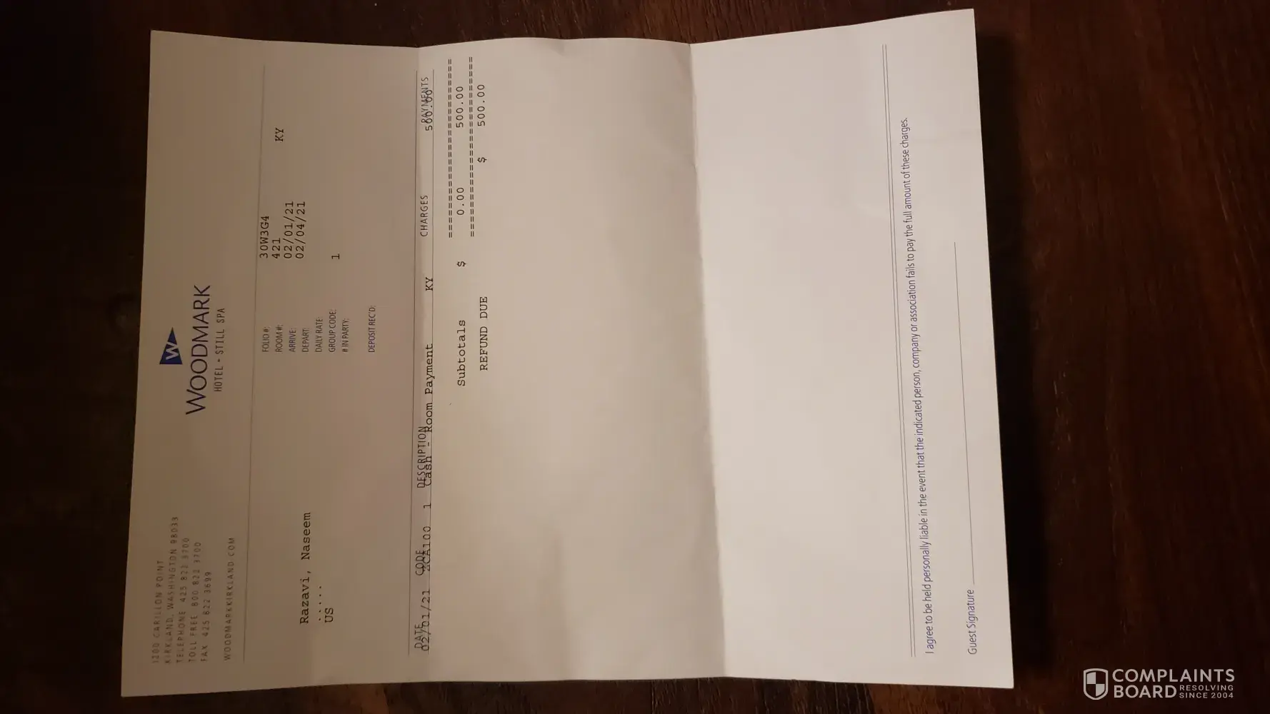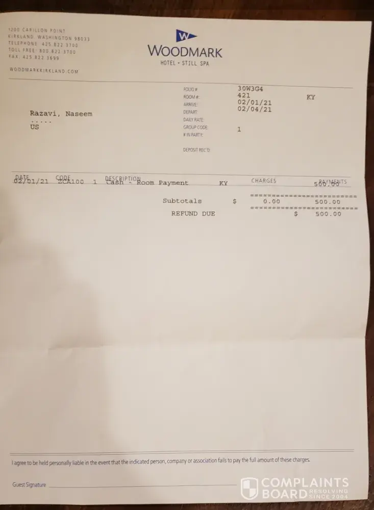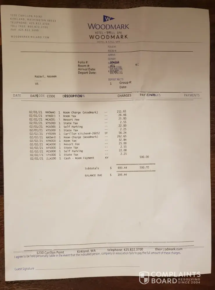 I have attached the actual official bill. Which also includes $500, dollars which I paid in cash upon arrival in addition to providing my credit card.