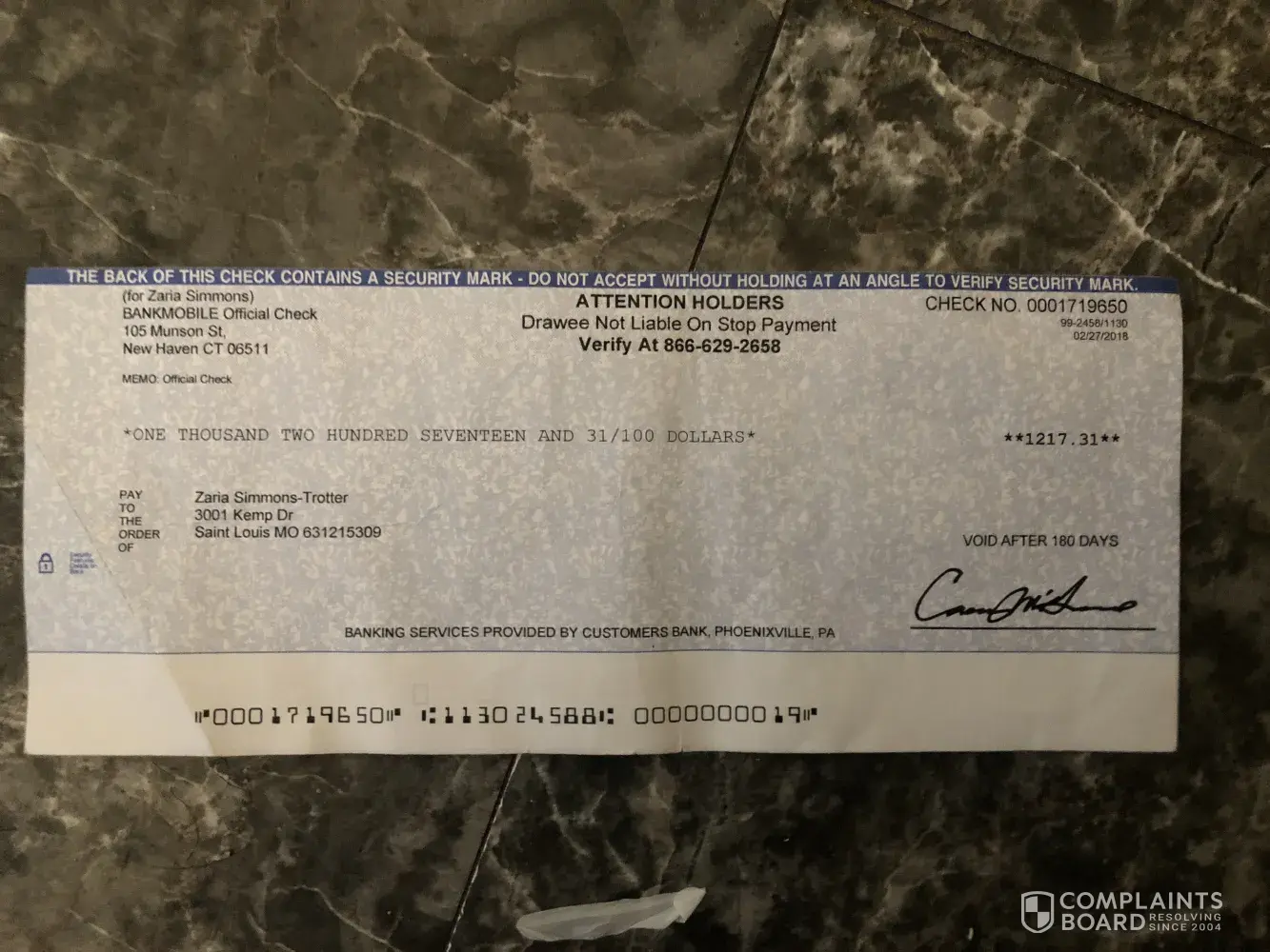 So I've been calling Bank mobile multiple times because they are not all Saying different things with the With the same situation I've been doing with Bank mobile for about three weeks now probably even more because first off I received the check in the mail I go & verify my check at walmart and they verified so it can be cashed and Walmart can't send a check denied so I called Bank mobile that same day and they're saying oh you can't use Walmart system to cash a check so I'm thinking why didn't you guys say that when Walmart first called you and let them know it was Walmart that was trying to cash a check then I called back again the next day and they are telling me that I cannot cash the check anywhere else because Walmart has verified already but but I didn't know that Walmart wouldn't be able to Cash because of the system which you guys at Bank mobile were telling me that, so then I called again the next day and I talk to a man on the phone and he said that I'll be able to deposit the check into my Bank mobile checking account so he put in a request three days ago for me deposit it is it OK just wait 24 to 48 hours and it will be in your account so I waited 24 to 48 hours and there was no check in my account so I called again today and the lady I spoke to on the phone I believe her name is Paige she said there is no request in the system for you to get the check deposited in your account but all requests we have in your account it'll send you a replacement check and I didn't request from the replacement check I requested for the check to be deposited into my account I can't keep depending you guys to say the correct thing because when all of your bank mobile people are telling me different things and I have missed Out on paying my bills because of you guys are playing around with my check I don't have time to keep playing with you guys And y'all are telling me to return the check back to you and wait again for another whole seven days to receive the check so today I'm going to let you guys know if I don't get the money I'm going to be basically going to be telling everybody about how you guys run your System and that your workers are not stand correct thing to their customers and I'm going to court .