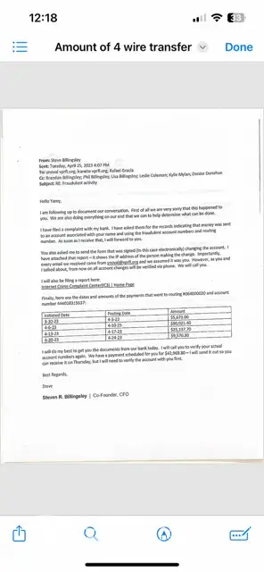 Read full complaintWire transfer fraud