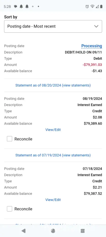 On 8/8/2024, just verified my bank card ending-in 7245 and then after re-ordering a replacement debit card on 8/19/2024 it got frozen . I don't know what happened there. Also, debit interest about $79,391.03 and overdraft on savings about $1.43. Funny thing is that 'business decision to end banking relationship us' isn't for checking account because...