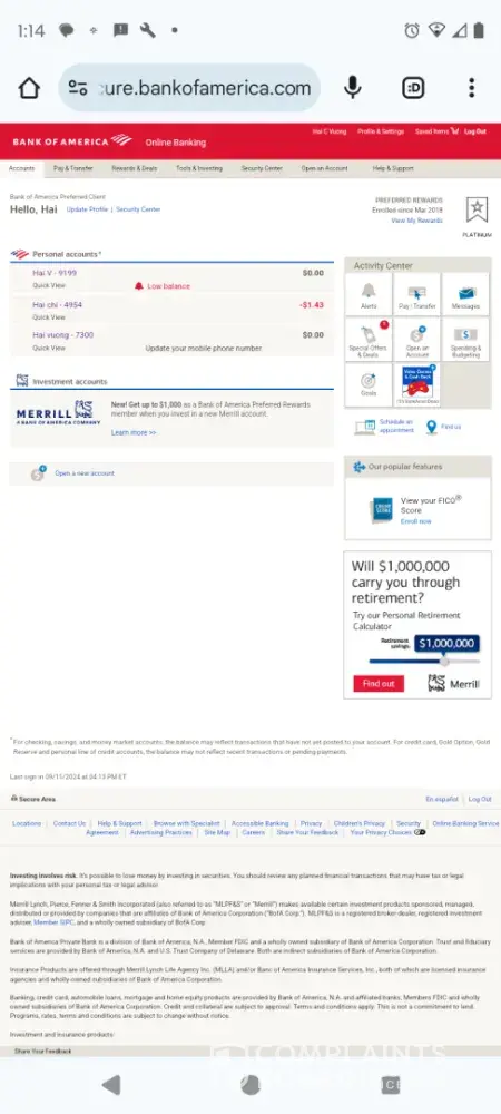 Read full complaintIs Bank of America Legit?