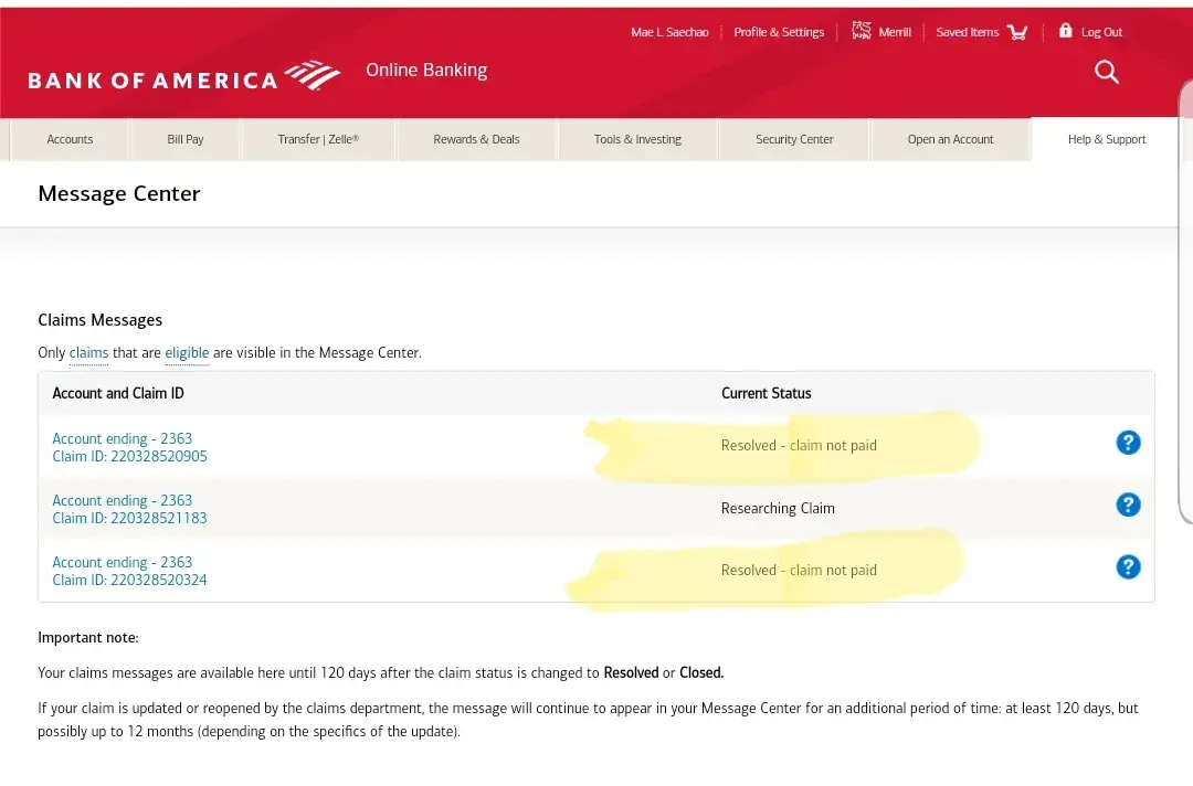 Bank of America Disputing the resolution