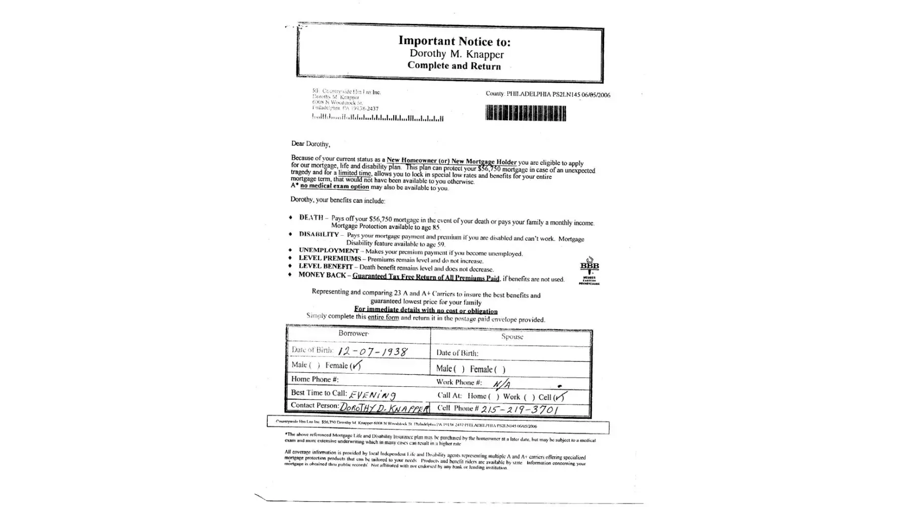 Desired outcome: I want to see the original loan documents and a copy of the insurance policy for the mortgage protection.