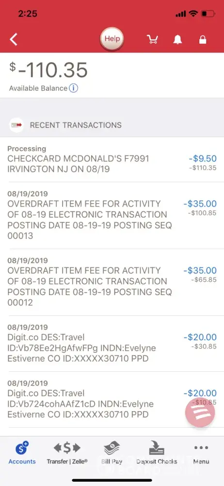 Hi my name is Evelyne Estiverne. I didn't buy anything on this company when I woke up I have 2 negative -20$ and went to 2 overdrawn 35$ and when I called claim this morning they said I have to file a claim report send it, I don't know if it's the right place to send that. I want to make sure I don't pay that negative 110$ without buying anything it's been a while I'm using BOFA I don't have no problem at all plz plz help me with that thank you and have a day.