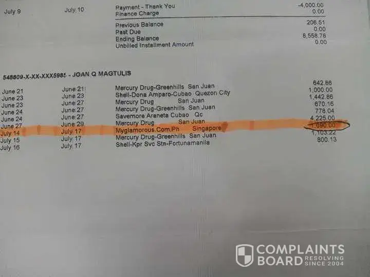 I received a text message to BPI that my ongoing transaction in MYGLAMOROUS.COM.PH SINGAPORE SGP on July 4, 2017 8:18am using my primary BPI Card Ending in 5985 was declined due to insufficiend credit limit
