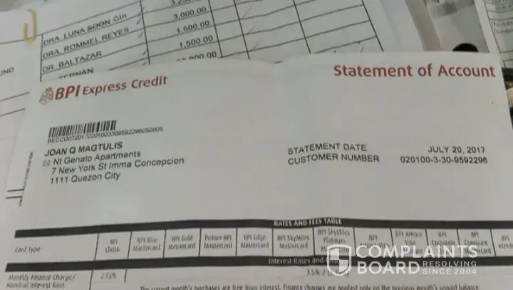 Bank Of The Philippine Islands [BPI] credit card unexpected outstanding balance...