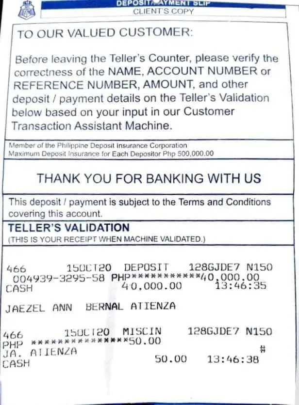 Hi my name is Jaezel Atienza. I just want to inquire about the transaction made last August 25 and October 15, 2020. There's a deposited amount on my account ([protected]) but it never gets to my bank. I keep on calling the BPI about this, they cannot give me a definite answer regarding this matter. I know you can track this issue, I attached the transaction slip and all the details were there. Here is my email address, [protected]@gmail.com