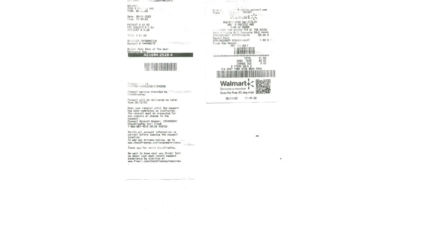 My name is Andrew J. Pomeroy. I live in Winterhaven, CA. I have had a checking account at Bank of the West for over three years and, up to this point, their customer service has been good. Winterhaven, CA is over 160 miles from my Bank of the West Branch in El Cajon, CA, so, on May 11th, 2023 I went to Walmart for some grocery shopping and to make a deposit to my Bank of the West checking account (account number [protected]). I went to the Money Center inside the Walmart in Yuma, AZ and told the person at the counter that I wanted to make a $50 deposit to my checking account. The person at the counter said that they ordinarily didn't do that type of transaction, but that she would try using the Bill Pay Service they normally use. The Bill Pay service was called CheckFreePay and their website is www.CheckFreePay.com. She said the transaction went through and would be posted to my account at Bank of the West the following business day. Before I left, I stated twice that the transaction should be a posted as a "deposit to my checking account" and repeated my checking account number. She stated twice that it would be and confirmed my checking account number.