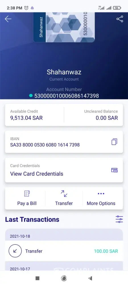 Read full complaintSaudi Arabian British Bank SABB - Banking