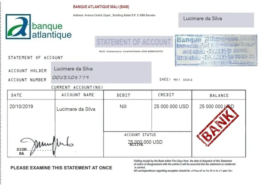 Banque Atlantique I am complaining about your bank account holder and collecting money in the name of your bank