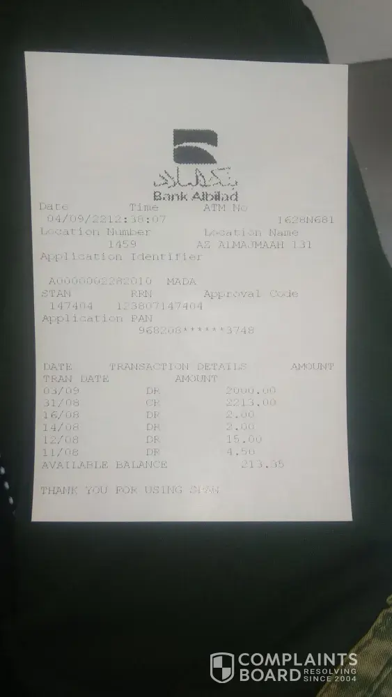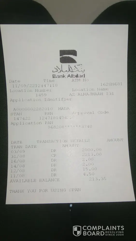 Read full complaintBanque Saudi Fransi complaints: history and resolution overview