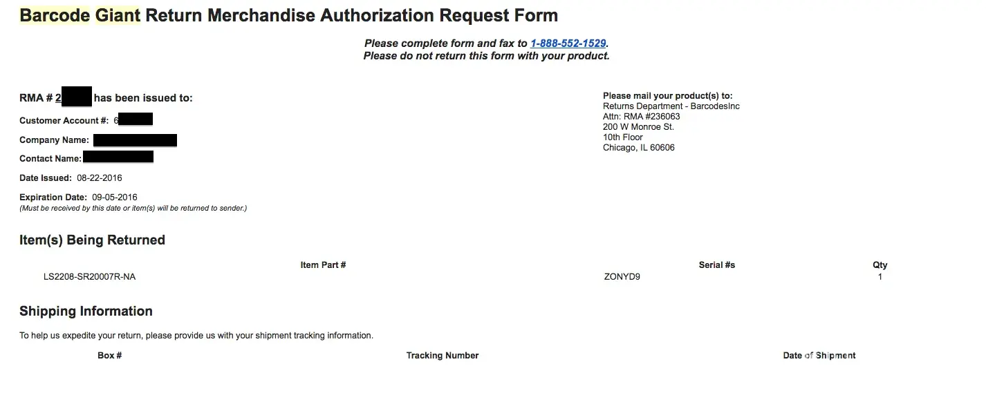 I mailed the scanner off and I thought it was done. At this point, a month had passed from when I first received the scanner to when I was finally able to return it. The company apparently doesn't cover return shipping which was annoying but the most important thing for me was that I return the item and get the refund. After I mailed the scanner off, another month had passed before my boss came to me saying that the barcode scanner refund never posted to the company credit card. I, once again, called BarcodeGiant where once again the employees seemed unsure of how to handle my situation. Apparently, the credit for my order was posted to their internal system, but they didn't submit the credit request to my company's credit card company. They never explained why they never submitted the credit to the credit card company.