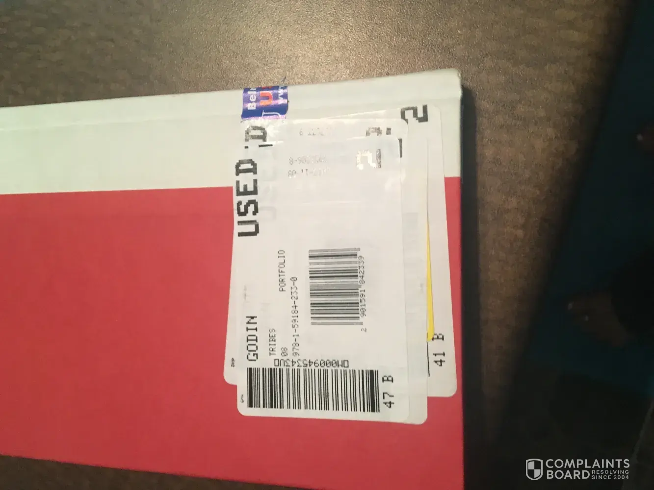 on 12/14 I received a book I ordered, only to find it had been used. There were "used" stickers all over the outside of the book and writing on the inside of the book. I contacted Barnes and Noble twice, only to be told that I would have to pay shipping to send the used book back. TOTALLY UNACCEPTABLE! I have been shopping with Barnes and Noble for years and have never been treated so poorly. I have disputed the charge with my bank and will also file a complaint with consumer affairs. Please see attached photos.