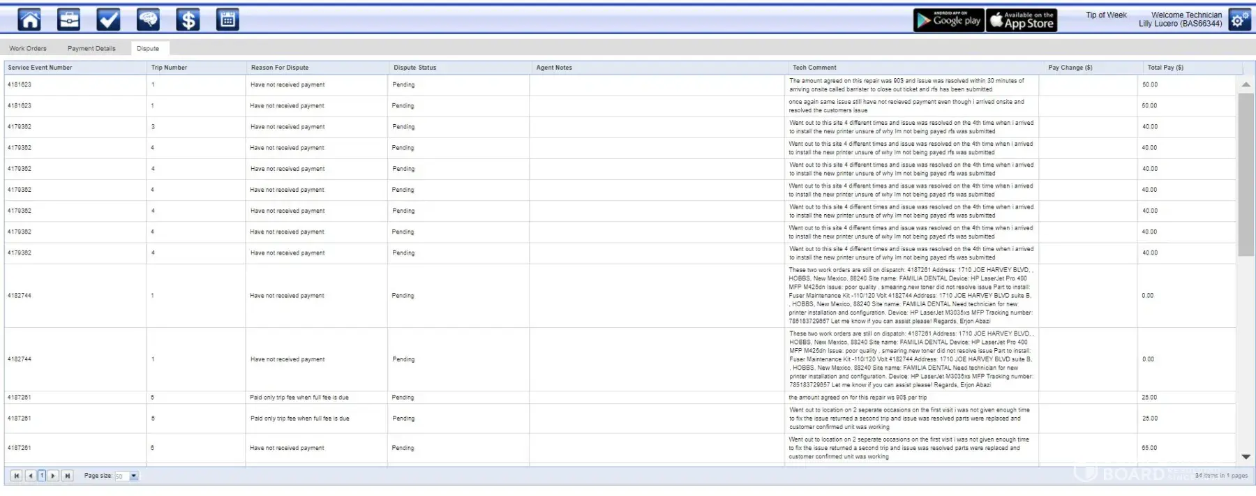 The last 8 work order were successfully completed and I had to dispute all of them due to no pay and I havent got a response in 4 months on why. I just keep getting harassed by dispatch 20 times a day to take more work. Its very depressing for me and my family to suffer such a loss.
