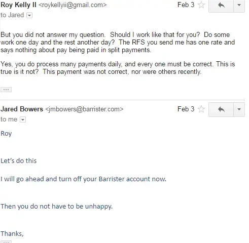 I would REALL like to be paid TODAY! I found a BARRISTER complaint board. YES, THERE IS A COMPLAINT BOARD! And saw I am not the first employees you have not paid on time. Well, guess what? I used to work for the Department of Industrial Relations, also known as the California Labor Board. I will not have any problem reporting BARRISTER this blatant violation of the California LABOR CODE 203, "which provides for the assessment of PENALTY against the employer "barrister" when there is a willful failure to pay wages due to the employee "me" data conclusion of the employer relationship.