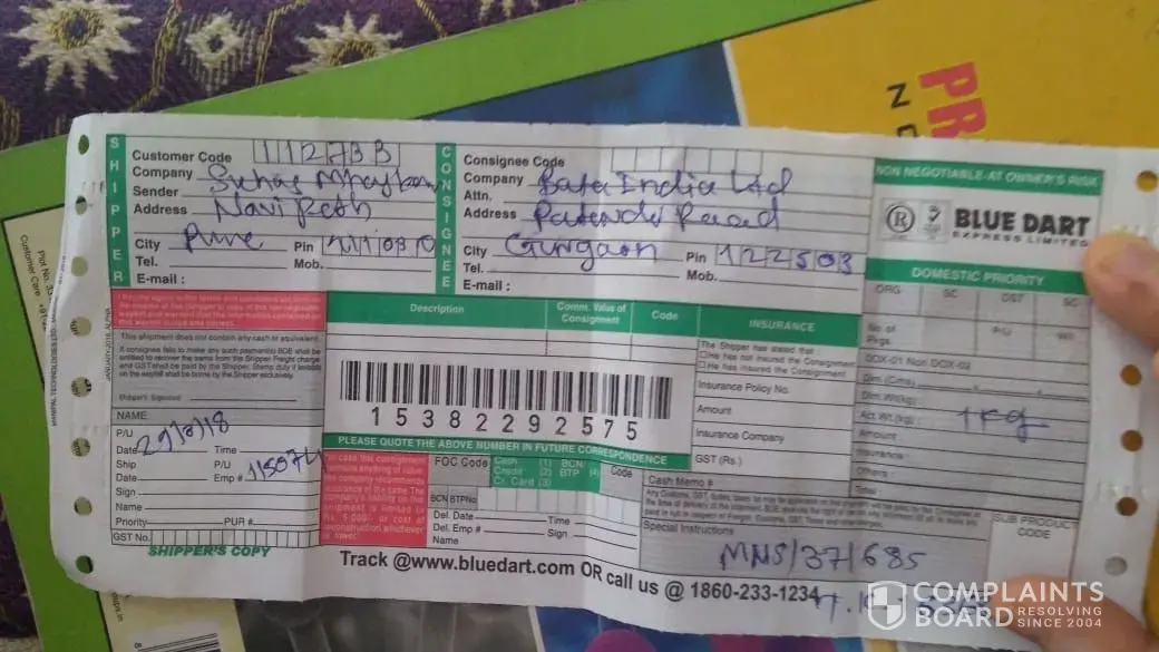 I have Returned Bata Shoes through Blue Dart Air Way Bill No.[protected] dated 29.03.2018