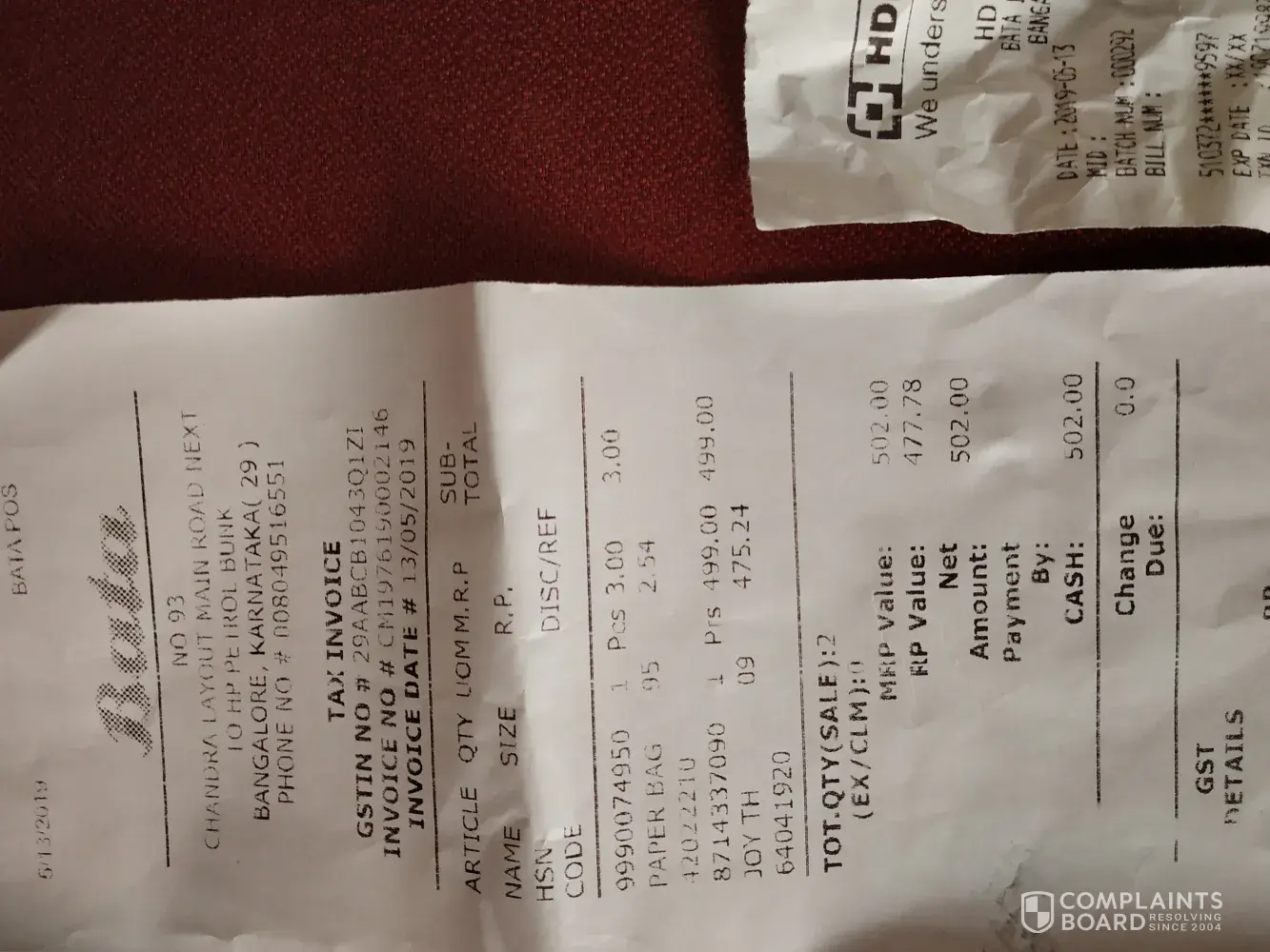 Subject: complain for branded Bata product.