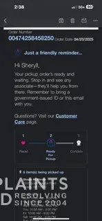 4/24/25 1:14pm, went to pick up an online order, had my email confirmation (email states bring email confirmation OR ID) they would not give my order without ID, retrieved from car, associate looked at it, went to get order, then asked what my name was? (obviously did not look at either email or ID) I asked her if she looked at ID, she said "the first name"...