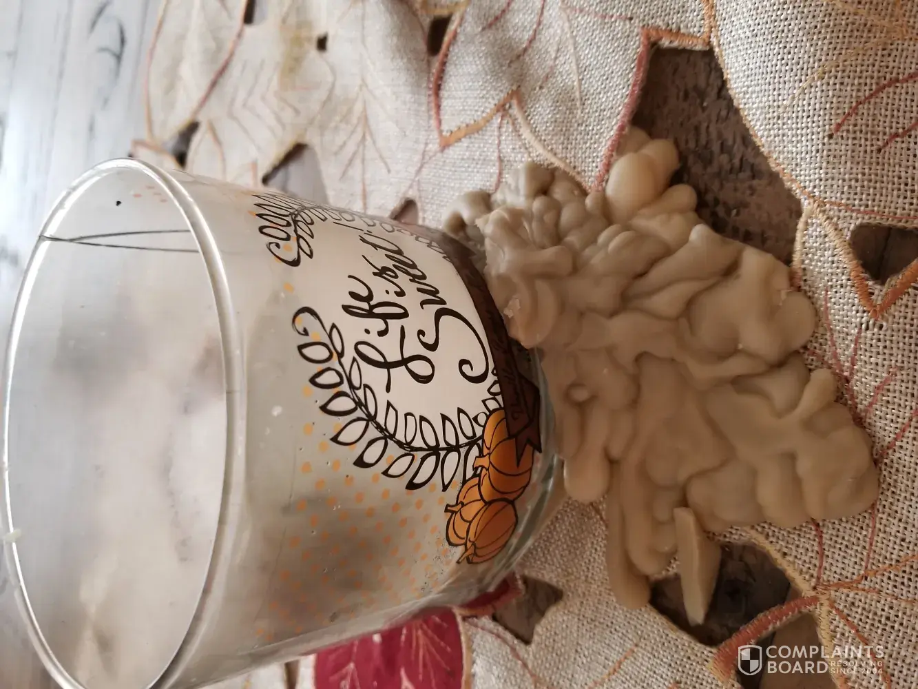 Burning candle for approx 1.5 hours as usual when I was walking by my dining room table and I noted that there was wax pouring out around the candle onto my brand new dining room table! I immediately put out the candle and noted a huge v shaped crack in the glass of the candle jar. The melted was now hardening all over my table runner and brand new dining room table. I did take pictures. There must have been a defect with this candle... I am a very satisfied customer of bath & body works and have used several of your candles and other products, however never ever dealt with something like this... Something that could have potentially caused a serious fire... Causing a huge loss!