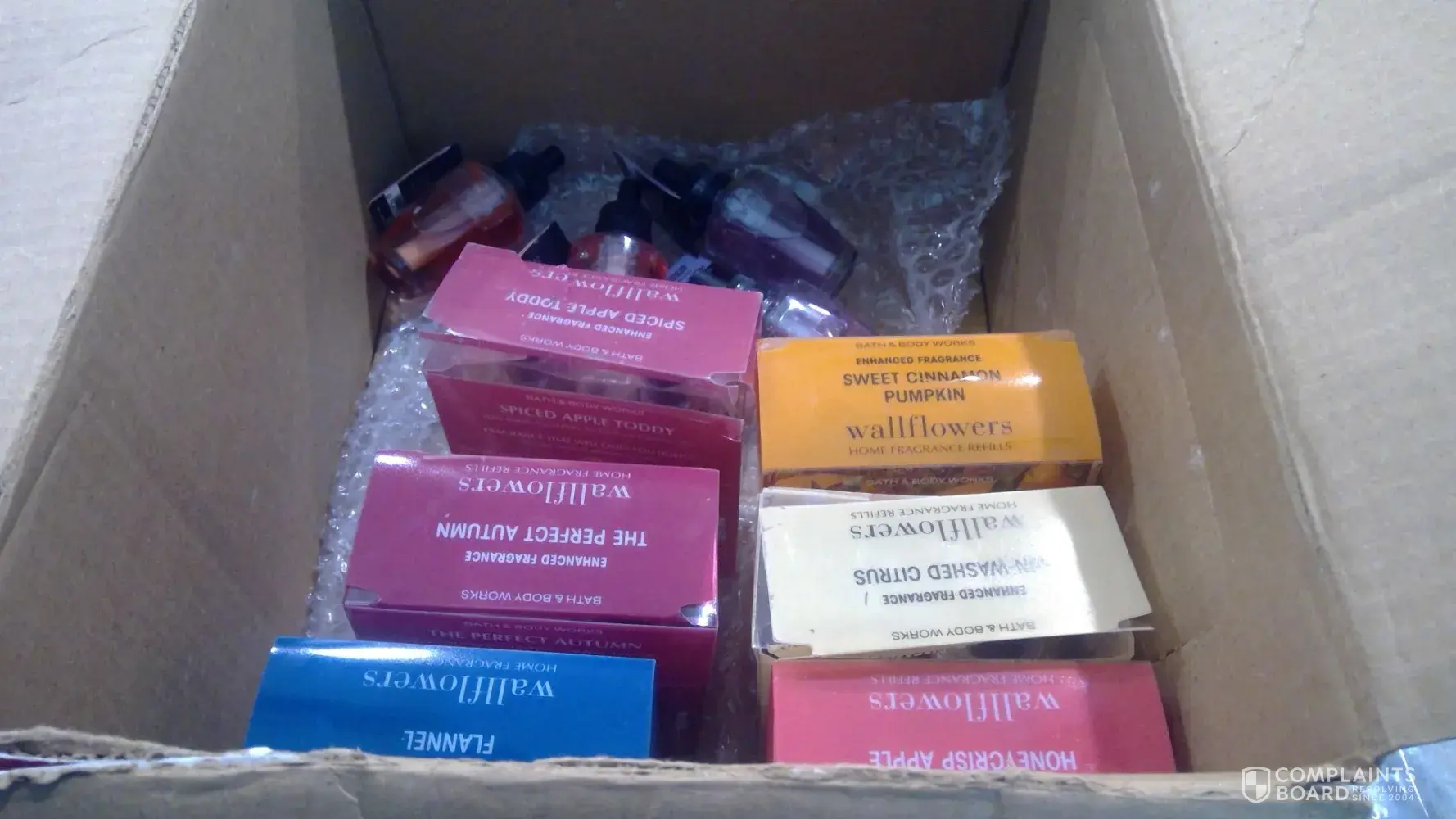 Order #[protected] - both of the product Cinnamon Stick Wallflowers refills were received in damaged condition. The plastic boxes they were in were ripped and torn with product leaking out of refill bottle. The other products I received were fine and the shipping box they came in was fine also and had no apparent damage at all. Looks like the damaged products were damaged before they were put in the shipping box but put in box and shipped anyway. Not impressed with the lack of character and outright spitefulness of person who did that.