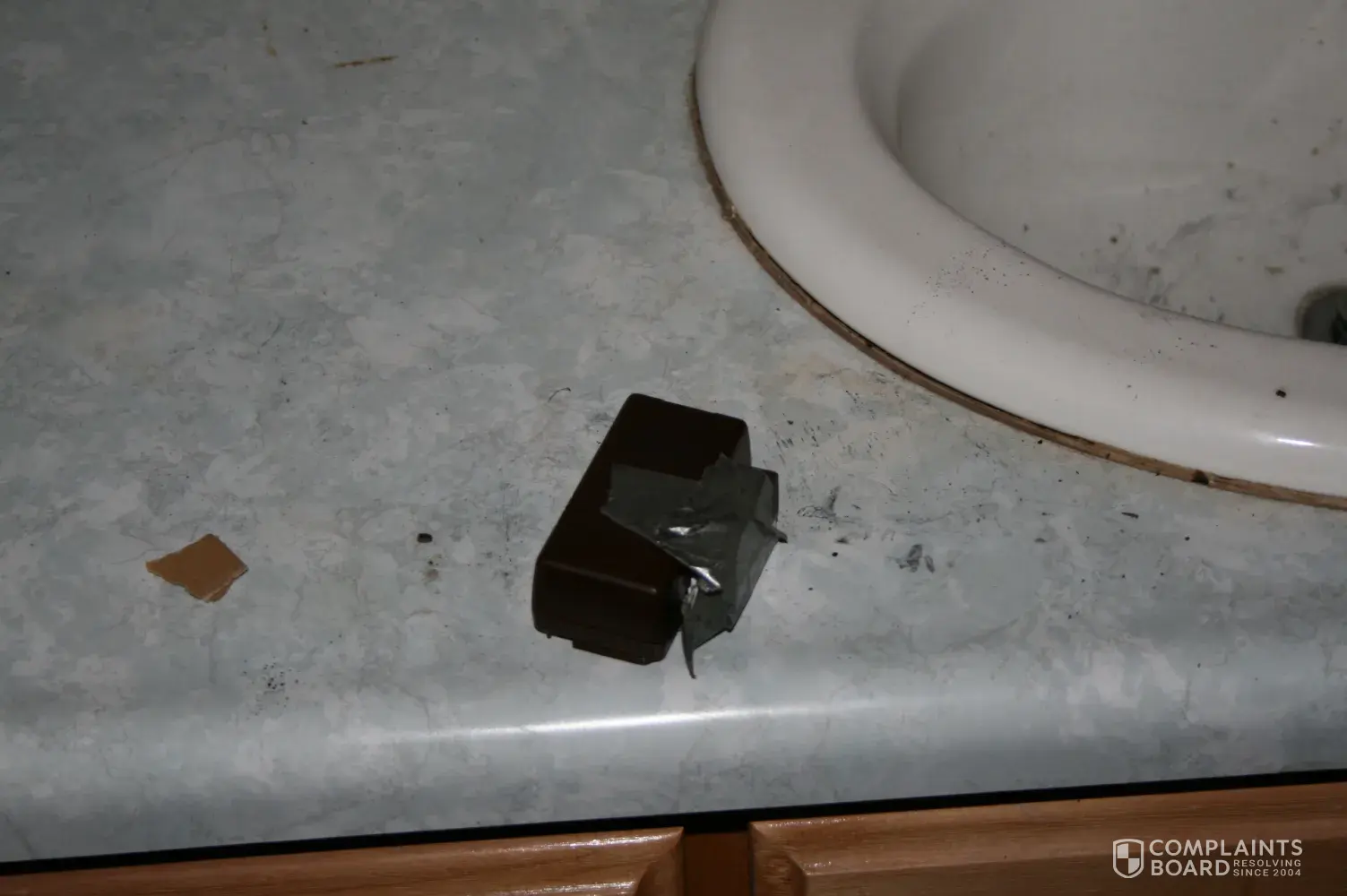 We invited them to look at the install and at the same time provide a security assessment of our needs. All they did was say there was no liability. They didn’t bother to provide any feedback on how we could upgrade the system to prevent future burglaries. When I asked the sales rep about the 90 day money back guarantee, he informed me that we had to have a good reason! Just one more example of the poor product and service provided by them. We changed alarm companies! The picture of the door shows how the adhesive did not work and the picture of the transmitter shows how easy it was for the burglars to remove it without sounding the alarm.