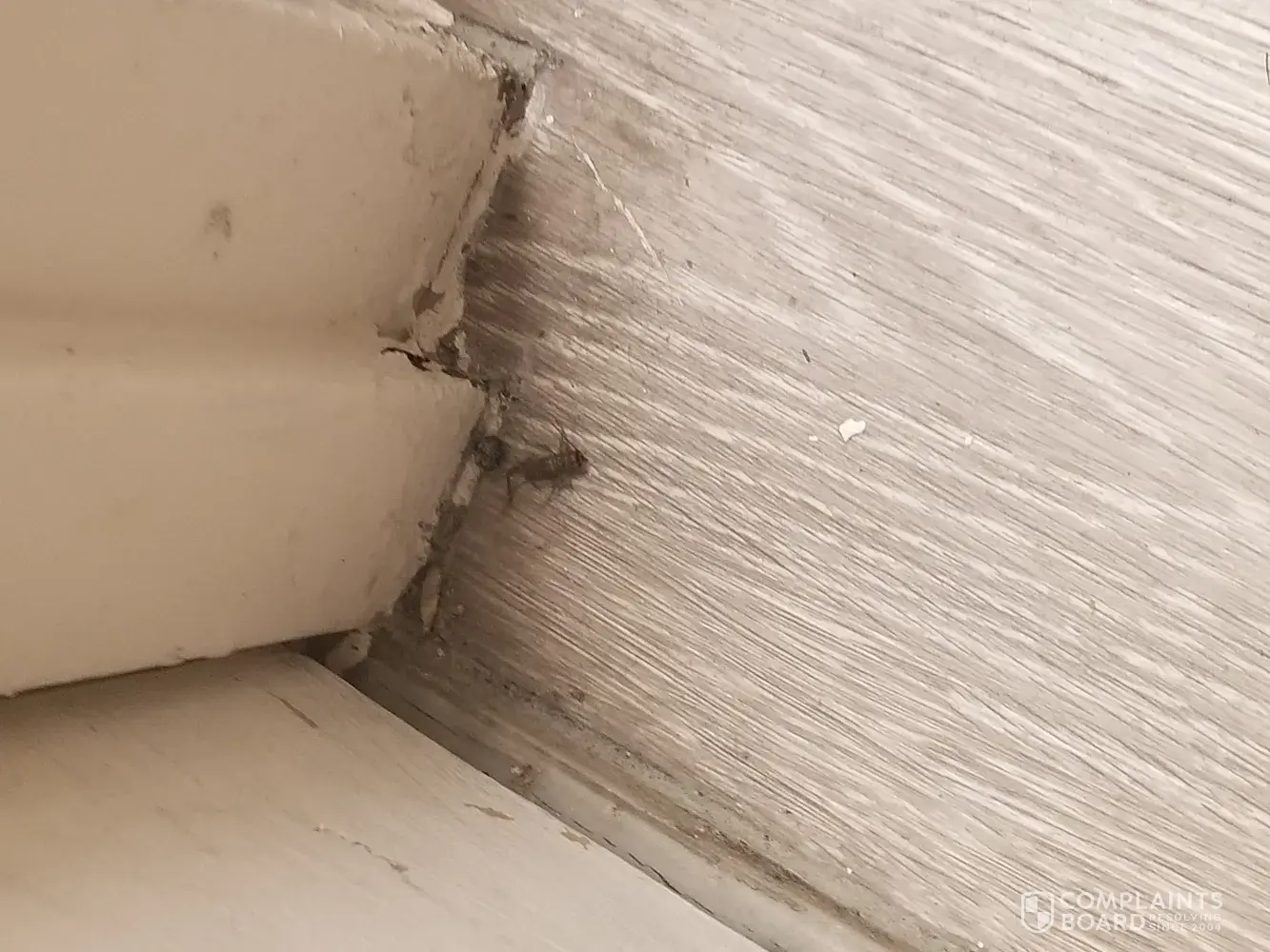 14. Sat down to eat and there were bugs crawling all over the wall I TOOK PICTURES! (attached) l I didn't notice but later saw them all over the table and then crawling all over me had to get up and take my plate and go clear in another room