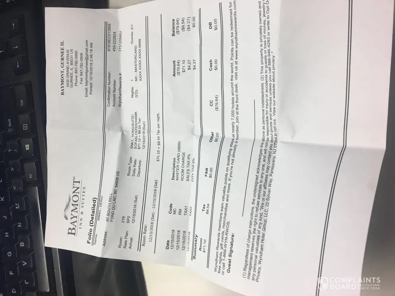 Thank you for your attention to these matters. We would appreciate the compensation of a nights stay at the Baymont in Ames, IA