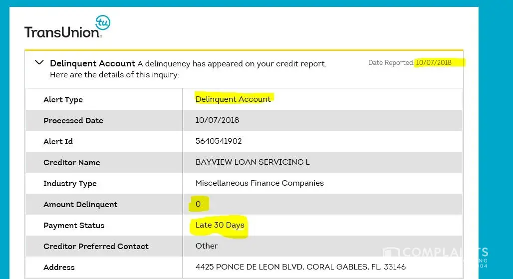 I closed on my condo and paid off my loan with bayview loan servicing in april, 2018. I received a letter from bayview in may of 2018 that the account was paid in full. October 9, 2018, I received an e-mail notice from transunion and experian that bayview loan servicing is reporting me past due. The incorrect delinquent payment report was removed after I filed complaints with the better business bureau and consumer financial protection bureau, however, bayview continues to report it again after it was previously cleared up. There is no one at bayview loan servicing that has been able to solve this. I have escalated and spoken with managers, etc. They still continue to tell me to fax a copy of the incorrect reporting from the credit bureaus so they can fix it, again!"